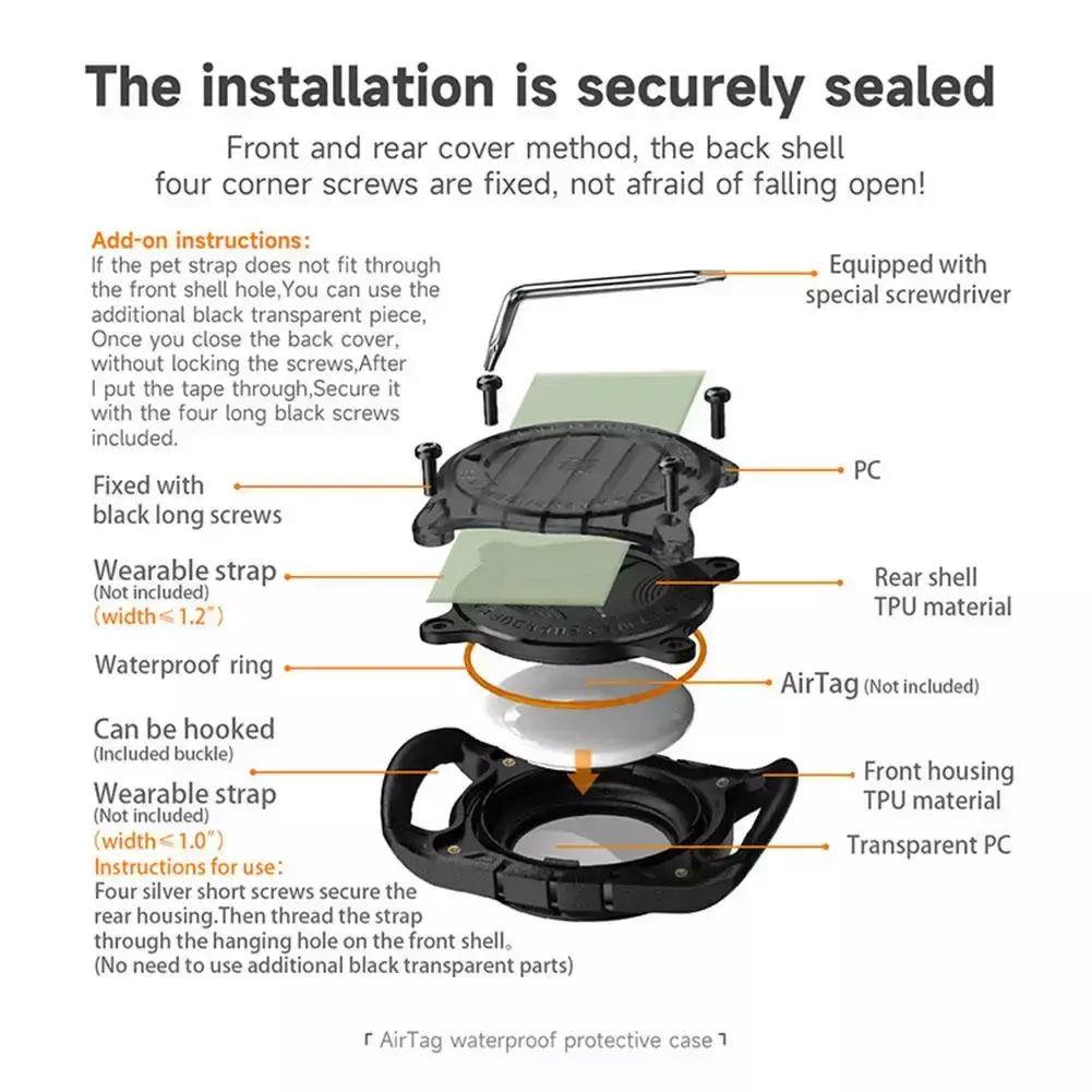 Instalação Rápida e Segura: Encaixar seu AirTag na coleira nunca foi tão fácil. O design intuitivo permite uma instalação simples e um fechamento seguro, mantendo o rastreador firmemente no lugar, sem ferramentas adicionais. Basta abrir, inserir o AirTag e prender na coleira.
